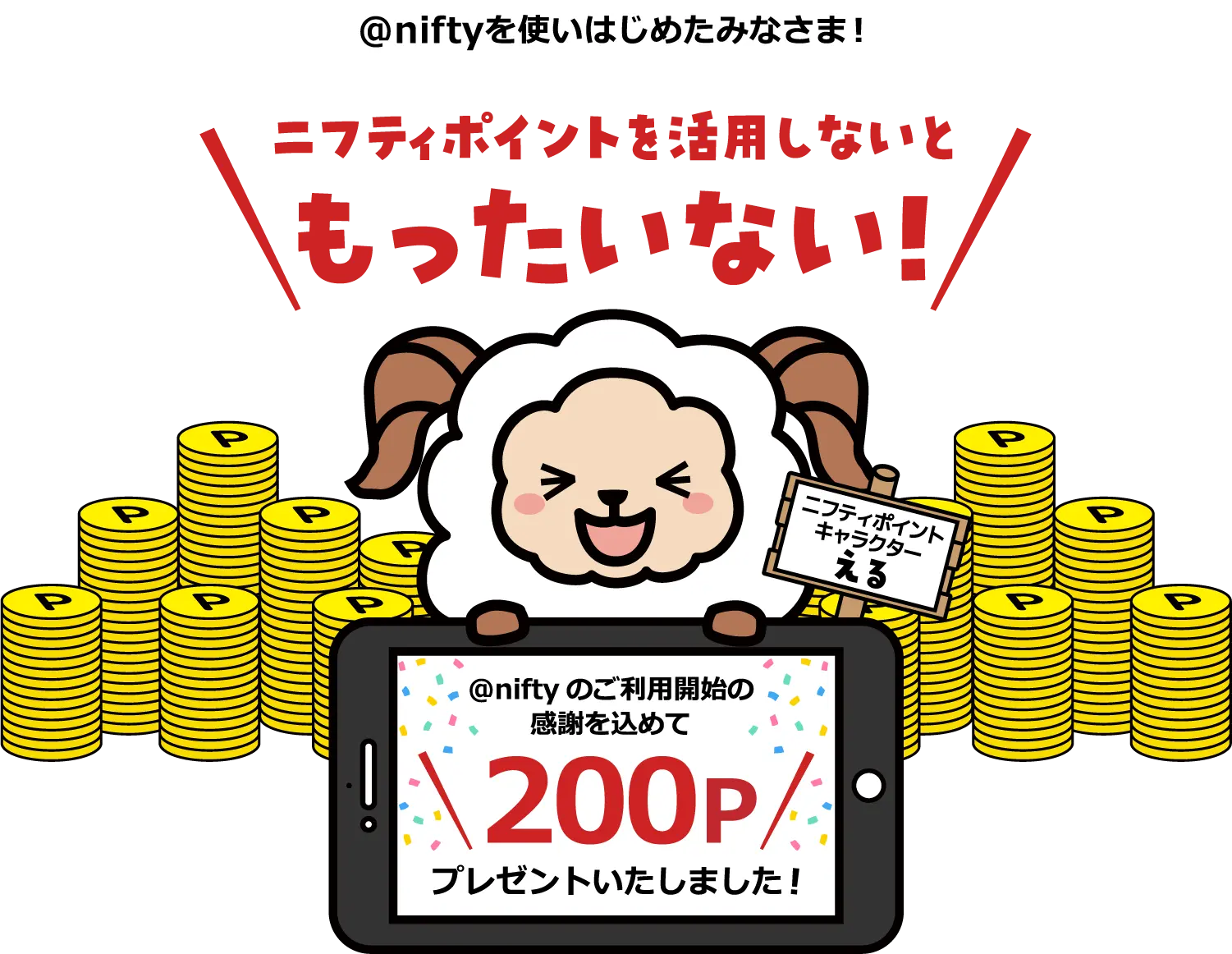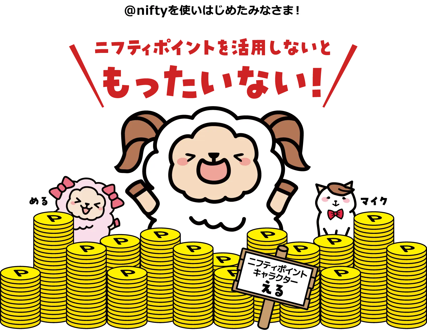 1P=1円相当で現金や電子マネーへの交換、@niftyの通信料金の支払いに使えます!
