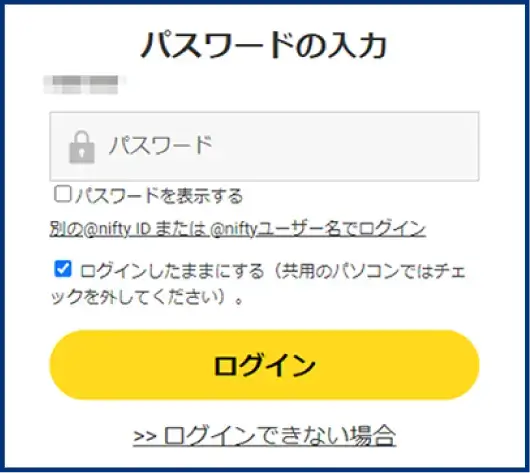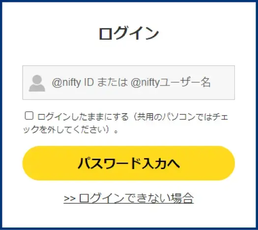 @nifty IDを入力して「パスワード入力へ」を押します。